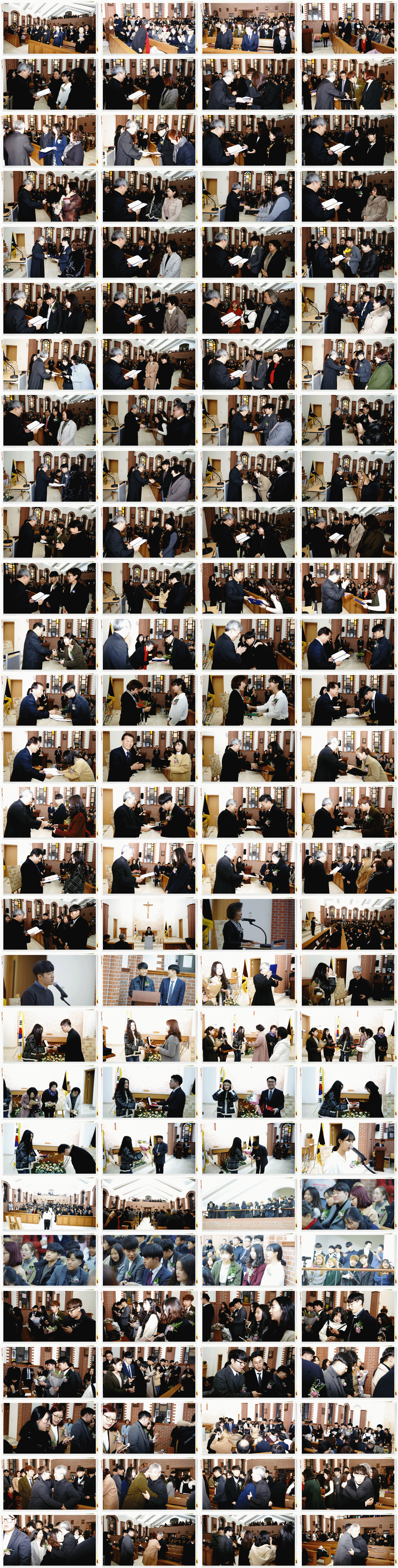 이 날 오후 2시부터 시작된 졸업미사와 이어지는 졸업식에는 축하를 해주기 위해 많은 내외 귀빈 분들이 참석해주셨습니다. 특히 이번 졸업 미사 때는 18기 졸업생들이 3년 동안 양업에서 살아온 삶의 의미를 다섯 글자 이내의 손 글씨로 만들어 이를 오동나무에 새겨 미사 때 봉헌하였습니다. 신부님의 강론에서 졸업생 한 명 한 명의 손 글씨 의미를 소개할 때는 어떤 친구의 손 글씨에서는 웃음과 또 다른 친구의 손 글씨에서는 아쉬움이 함께 묻어나는 시간이었습니다. 이 오동나무 손 글씨 판은 양업 역사관에 18기들이 남긴 의미로 영구히 보존될 것 입니다. 이 날 졸업미사와 졸업식에는 청주교구 총대리 강희성 팰릭스 신부님, 김인자 명예교장님, 학교운영위원장 김진현 ㈜ 금진화학 이사장님, 덕영재단 전 휄리시아 이사장님, 김양식 옥산면복지회장님을 비롯한 귀빈들께서 참석하여 18기들의 졸업을 함께 축하해주셨습니다.