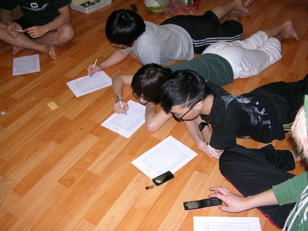 열심히 '가치관 경매지'에 예산을 작성중인 대나무 홈 학생들~~