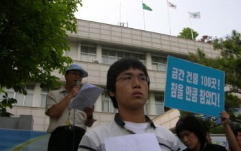 청원군청 앞에서 석산개발 반대 시위~