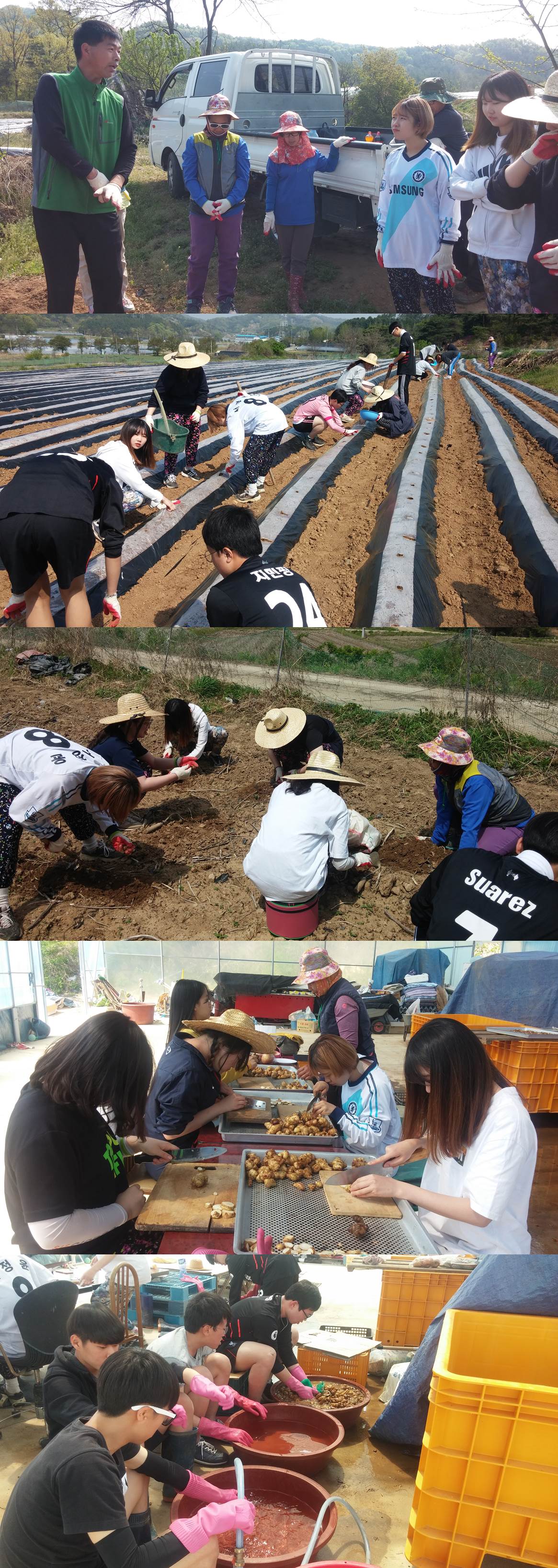 둘째 날에는 세 모둠으로 나누어 돼지 감자를 씻고 썰어서 건조시키는 작업, 밭에 비닐을 치는 작업, 모판을 만들고 나르는 작업을 하였습니다.