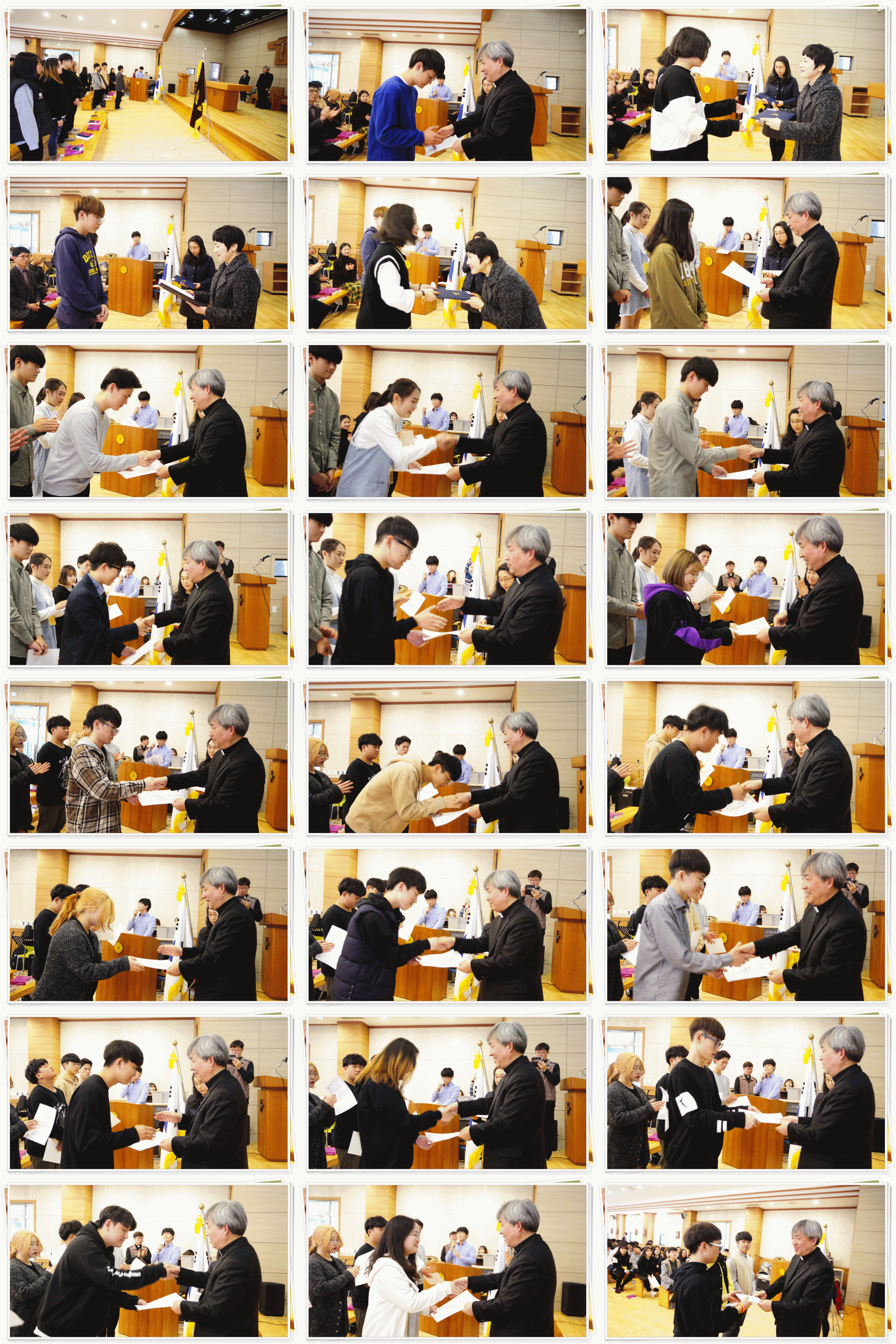 개교 기념미사에 이어 진행된 2017학년도 학급회장과 홈장들에게 임명장이 수여되었습니다. 이들에게 주님의 사랑이 가득 내려와 리더십 가득한 한 해가 되길 기도해 주시길 청합니다.
