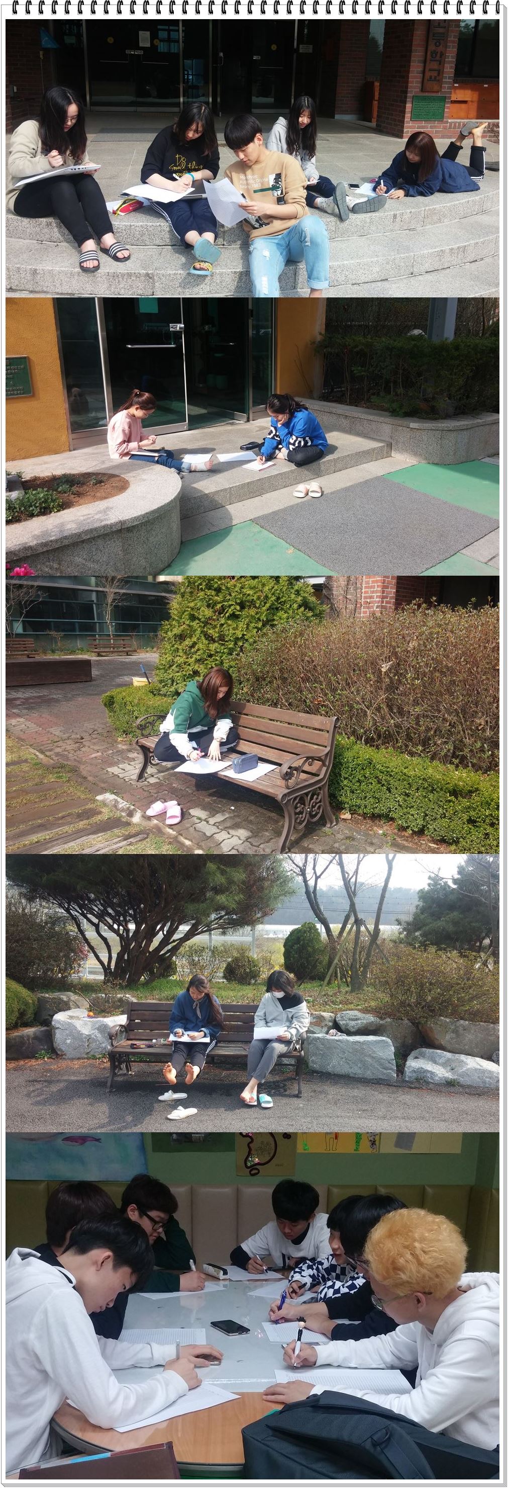 '자유, 하나, 간격'이라는 주제로 진지하게 글을 쓰는 우리 학생들의 모습이 참 예뻤습니다.