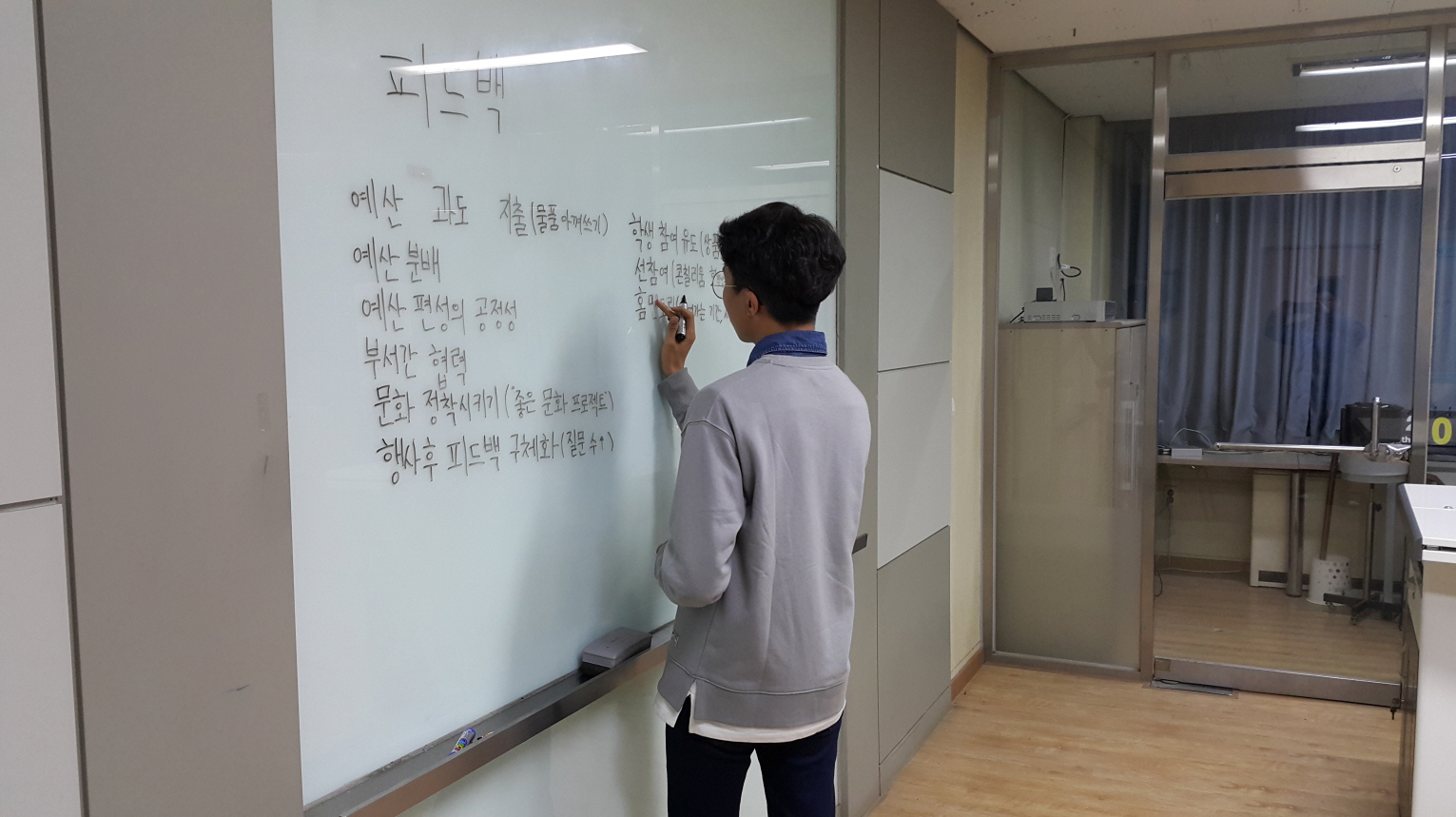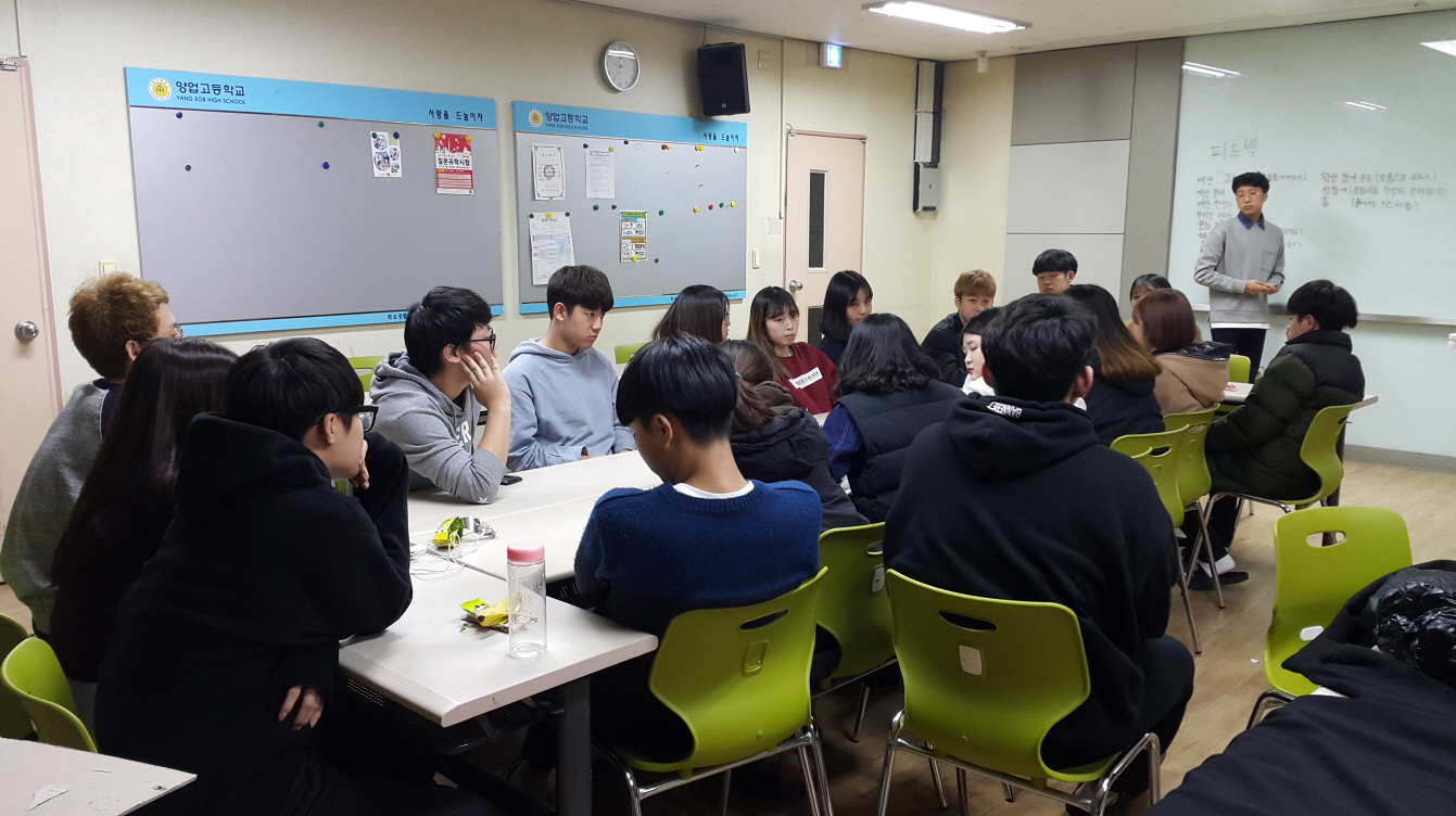 학생회가 (나지작반) 나부터, 지금부터, 작은것부터, 반복적으로 솔선수범하여 좋은학교 양업의 학생자치문화를 선도하기 위함입니다. 1박 2일 동안 학생회장을 중심으로 각 부서의 부장들이 열심히 준비하고, 평가, 논의하였는데요!