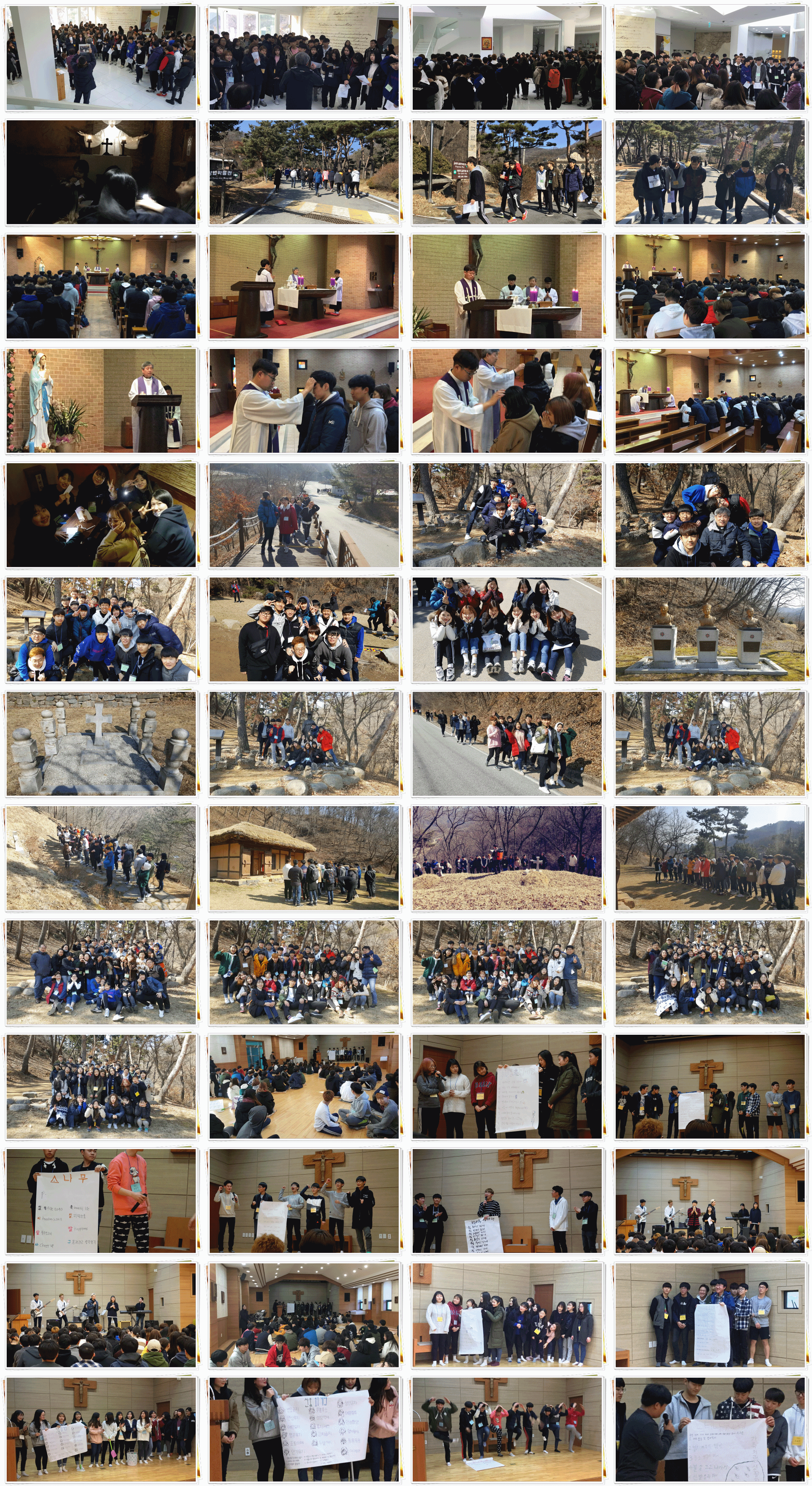 2017년 3월 6일 월요일, 양업사랑 첫째 날이었습니다. 최양업 신부님의 발자취를 따라 배티성지로 이동한 우리 친구들의 눈에는 각 기수마다 관록이, 활발함이, 긴장감이 느껴졌습니다. 최양업 신부님의 역사를 기록해 놓은 박물관을 관람하면서 준비되어 있던 미션도 수행하고 마사와 맛있는 점심 식사를 한 뒤 순례지 산을 오르기 시작했습니다. 무명 순교자의 묘들을 보면서 이름까지 바치며 헌신할 수 있다는 것이 ‘과연 어떤 깊은 의미일까?’, 그리고 ‘나는 어떤가?’를 되돌아본 학생도 있었습니다.