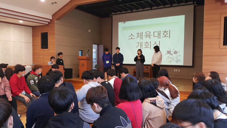바로 이어 학생자치회 문화기획부 주관으로 시행하는 소체육대회 개최식이 있었습니다.