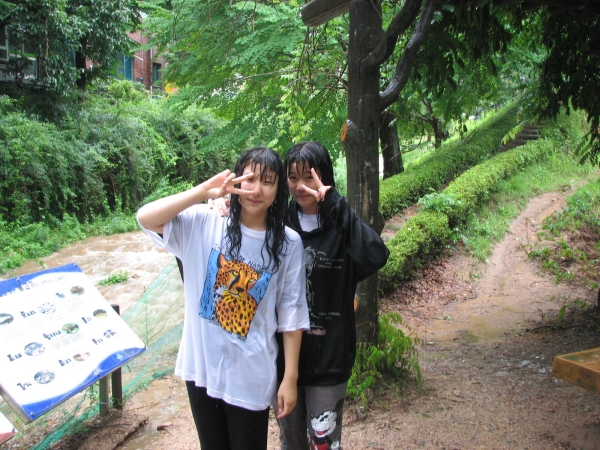 빗속에서 응원하다 내려오는 보경이와 소혜