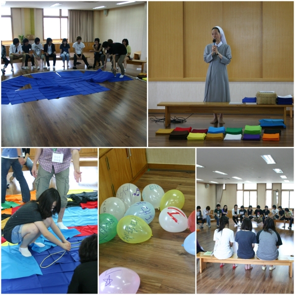풍선을 이용한 이 프로그램은 서로의 협동과 일치를 도모했고 풍선하나 하나에 글을 써놓으며 버릴수 없는, 우리가 지켜나가고 싶은 것들을 지키시위해 최선을 다하는 프로그램이었고 이어서 1학기의 학교생활을 마감하며 지난 시간을 돌아보고 2학기의 새로운 계획을 세우는 작업을 실천교리로 꾸미는 시간을 가졌습니다.