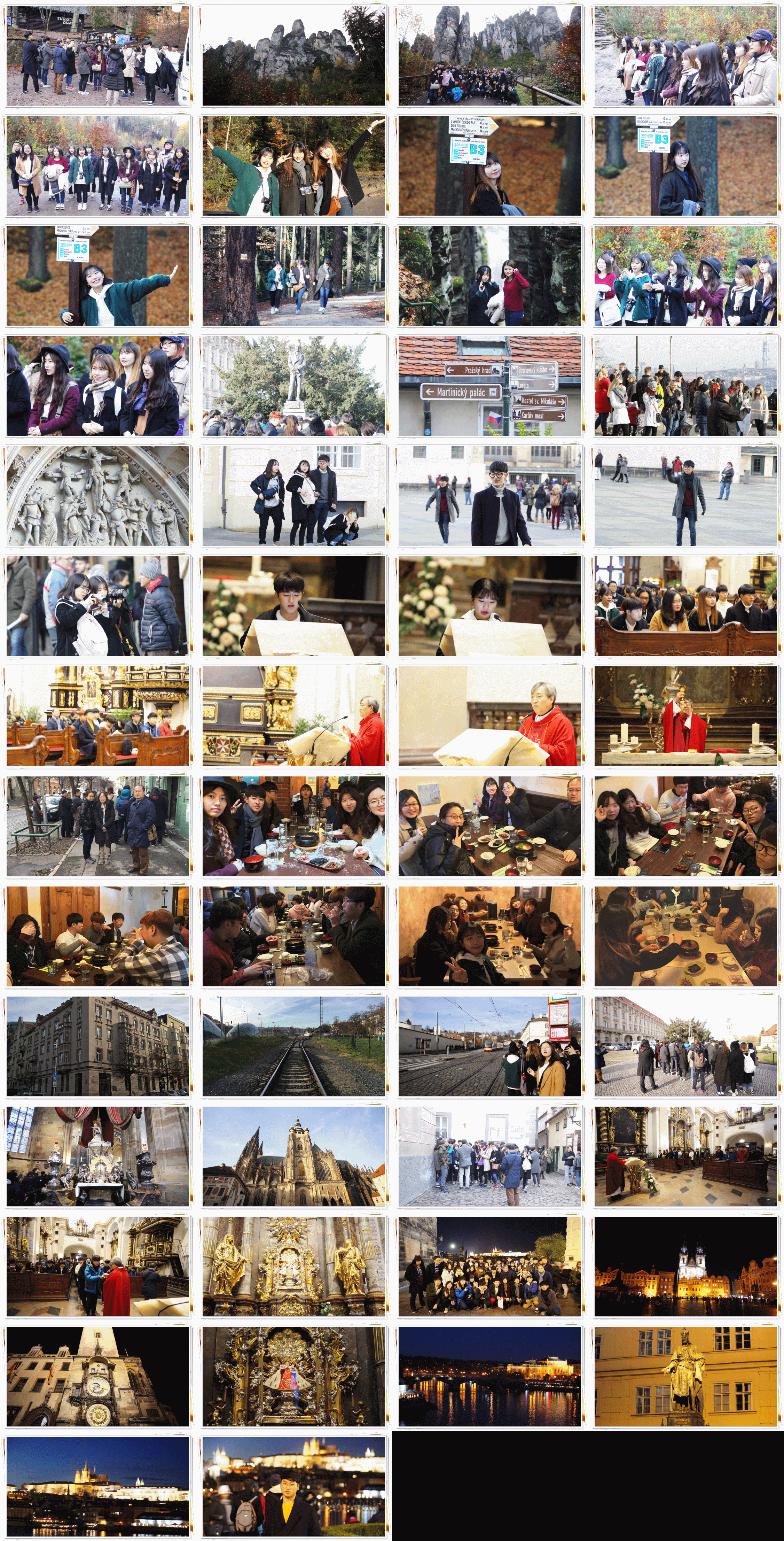 친구들이 기대하던 트래킹이 있는 3일차 아침, 우리는 체스키라이로 이동했습니다. 2시간가량 거대한 자연의 일부를 걸으면서 깨끗한 공기와 나무들 사이로 들어오는 따뜻한 햇살을 만날 수 있었습니다. 이리저리 눈을 바삐 움직여야하는 도시 관광과는 달리 차분한 마음으로 자연을 만끽하는 시간이었습니다. 트래킹을 마친 우리는 다시 프라하로 향했습니다. 프라하에서 가장 먼저 찾은 곳은 바로 프라하 성. 프라하 성에 들어가니 입구에서부터 성을 지키는 근위병이 보였습니다. 근위병을 지나치자 높고 뾰족한 건물이 보였는데 그 곳은 바로 프라하의 역사와 함께 지어진 성 비투스 성당이었습니다. 성당 내부는 알록달록 아름다운 스테인드글라스로 장식되어있었고, 그곳에서 성 네포묵의 묘도 볼 수 있었습니다. 성에서 내려와 아기예수성당으로 향했습니다. 아기예수성당에서 친구들과 선생님, 신부님이 함께 주일미사를 드렸습니다. 미사가 끝난 후 성당을 둘러보는 시간을 가졌는데 성당 2층에는 각국에서 만든 아기예수의 옷이 전시되어있었습니다. 한쪽 유리칸 안에 보이는 한복이 자랑스러웠습니다. 저녁을 먹은 후엔 프라하의 밤을 느끼는 시간을 가졌습니다. 카를교와 틴 성당, 천문시계가 빛나는 밤은 오랫동안 친구들의 기억에 남을 만큼 아름다웠습니다. 호텔 이동을 끝으로 길었던 4일차 일정이 마무리 되었습니다.