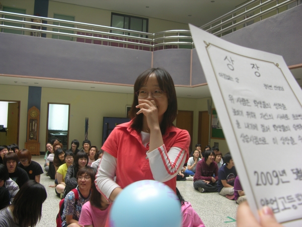 위 사람은 학생들의 성적을 높이기 위하여 자신의 사비로 쵸코빵을 내기로 걸어 학생들의 승부욕을 상승시킴으로 이상장을 수여함.