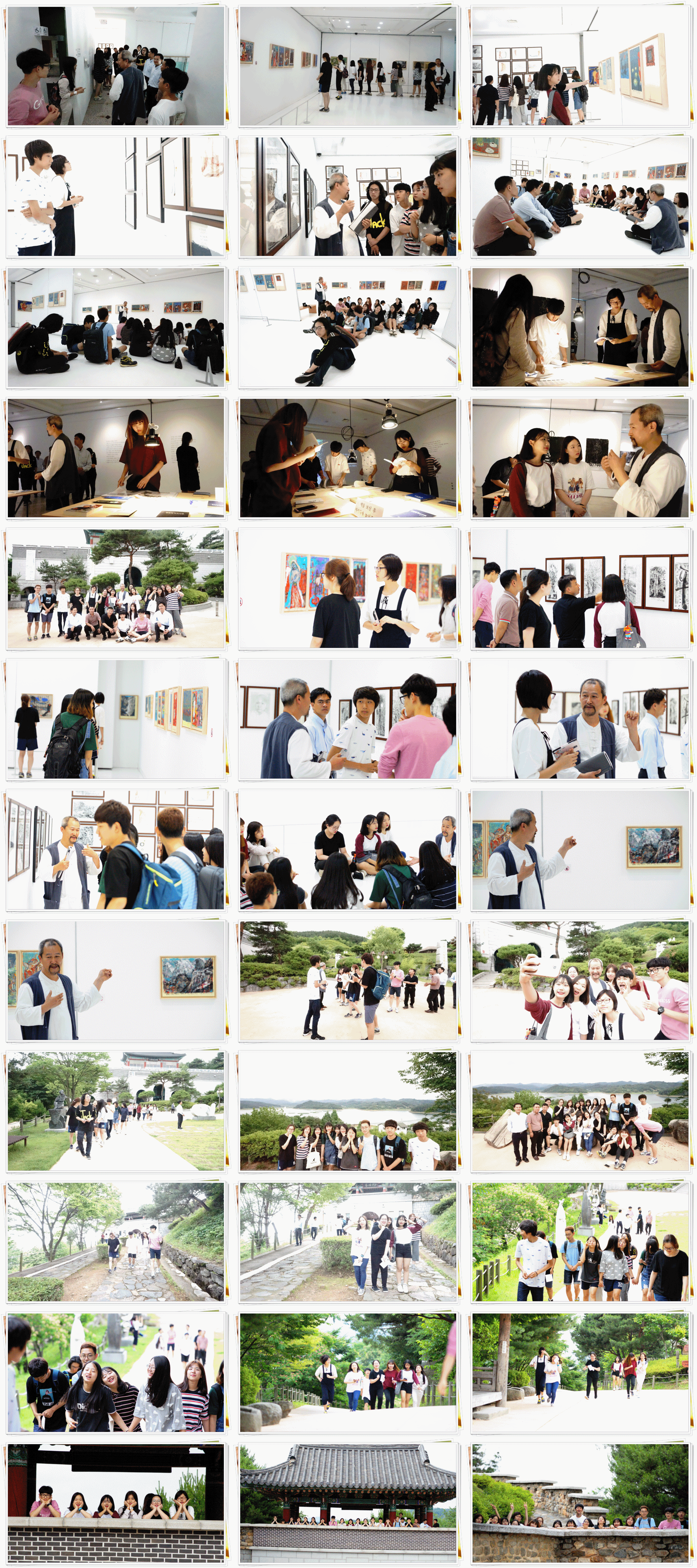 뜨거운 여름 햇살이 어느덧 코앞으로 다가온 6월 16일 양업홍보반(CA)과 1, 2학년 미술관 관람 신청 학생들은 뜨거운 여름 햇살을 잔뜩 머금은 대청호와 대청호 미술관에서 장르융합기획전 ‘두 지평사이’ 김사환 ECRITS 展 전시를 관람했습니다.