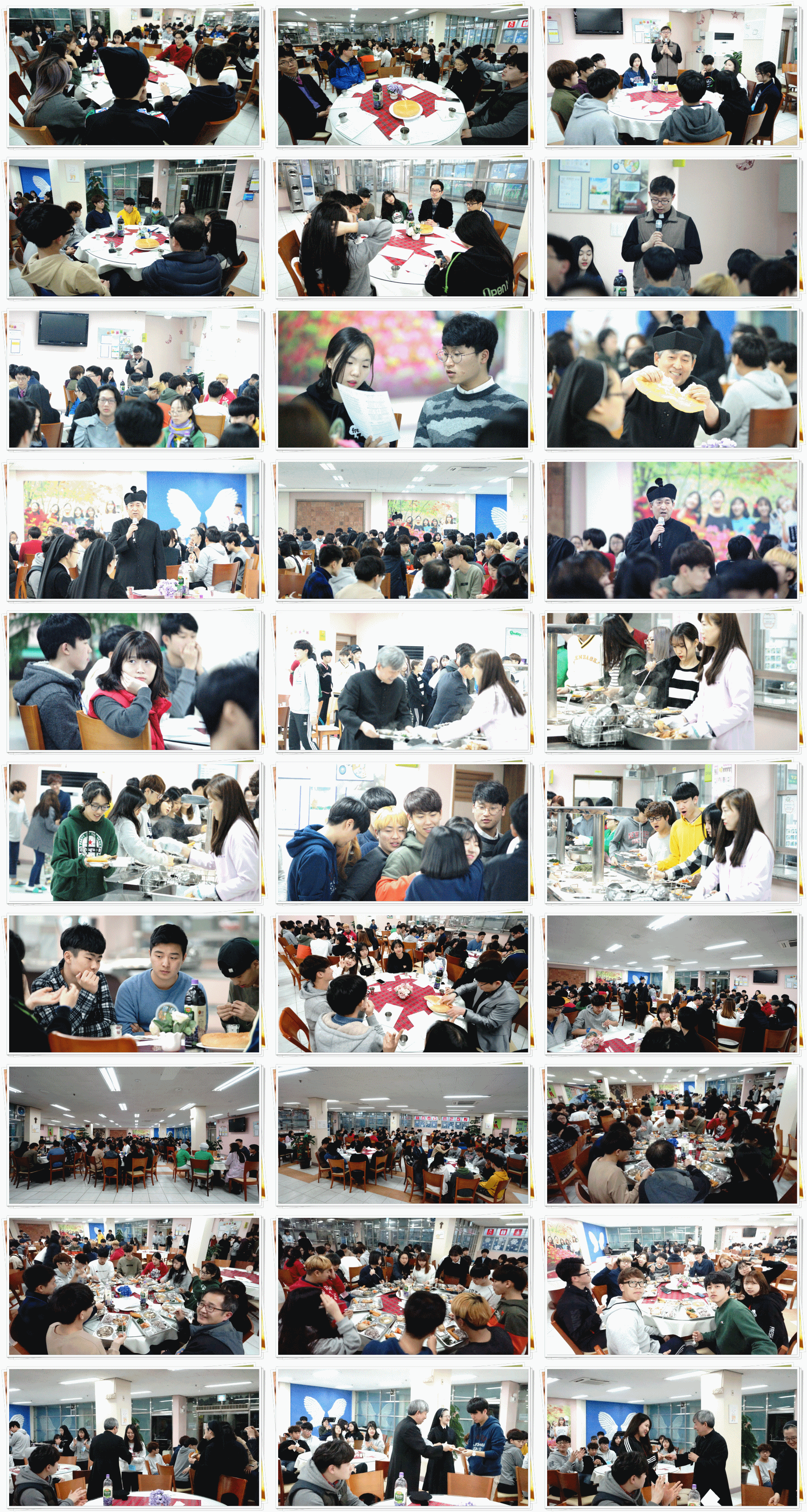 1학년들은 처음 겪어 어색하고도 밝은 분위기 속에, 저희는 반끼리 둘러앉은 식탁에서 파스카 예식을 거행했습니다. 1학년들은 재학생들의 큰 노랫소리에 음을 보태어 그동안 열심히 연습했던 성가를 불렀고 예식이 끝난 후에는 파스카에 대한 에파타 학생들의 질문이 있었습니다. 신부님의 답변을 듣고 난 후, 전교생이 다함께 만찬을 먹고 나서 모두가 다 먹을 때까지 기다리는 모습이 무척이나 인상적이었습니다. 식탁에 모여 앉아 빵과 포도주스를 나눠 먹고 혹여 부족한 사람에게 자신의 것을 흔쾌히 덜어 주는 모습은 마음이 따뜻해지게끔 했고, 다시금 양업고 특유의 신념과 정이 그대로 보이는 것이기도 했습니다.