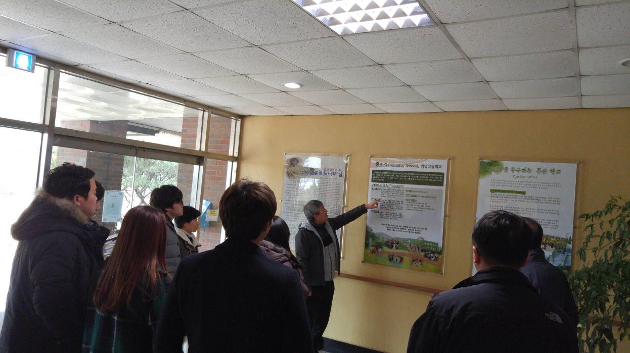 산자연 중학교 이영동 신부님과 선생님들께서 우리 학교를 방문하셔 교장신부님의 안내로 학교를 둘러보시고 교감선생님, 학생부장, 특성화연구부장선생님과 양업고등학교 교육과정 및 기숙사 생활등에 대해 질의 응답하는 시간을 가졌습니다.