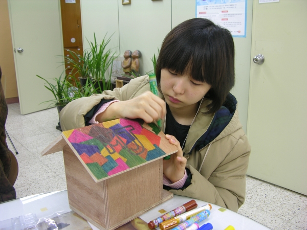 양업고 인근 산에 새장을 달아주기 위하여 마지막 마무리를 하고 있다.