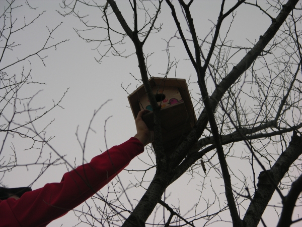 고3 학생들이 봉사활동의 일환으로 새집을 만들어서 학교인근의 나무위에 걸어놓았다.