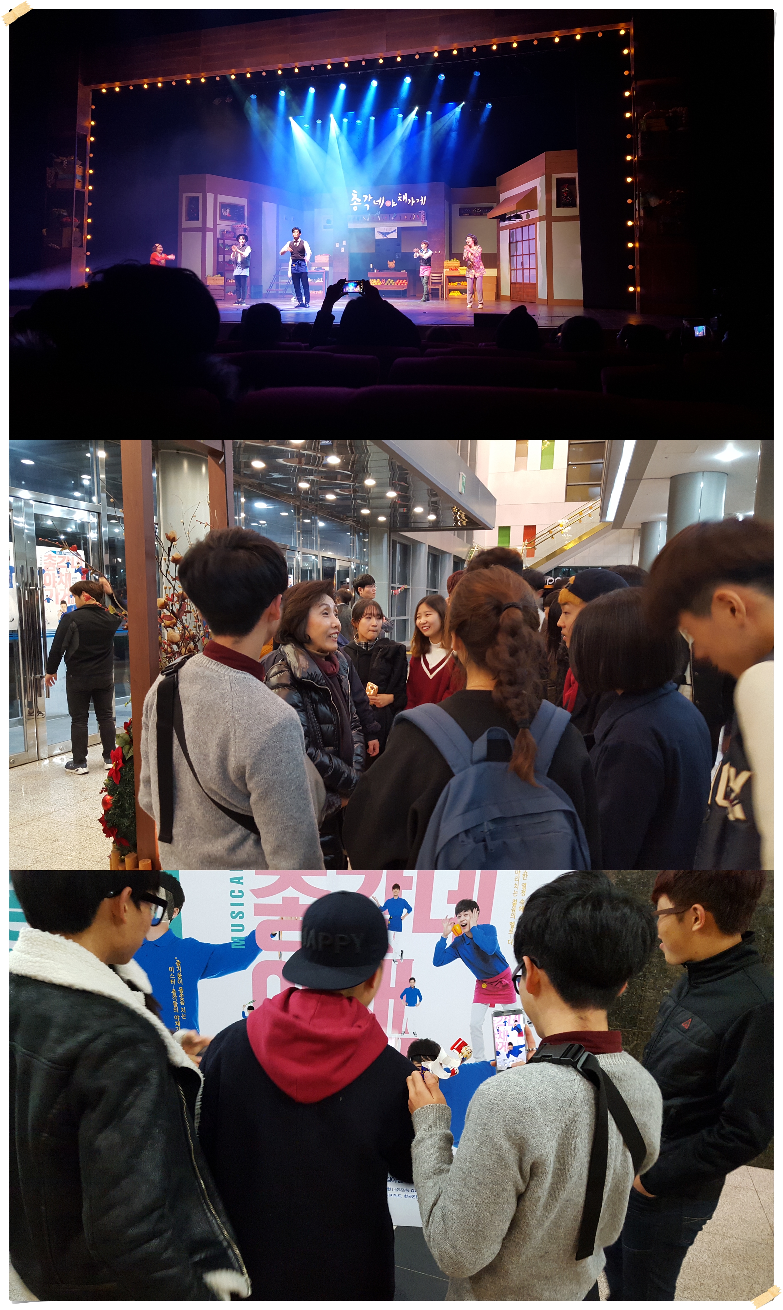 힘든 길이지만 꿈을 가지고 열심히 살아가는 총각들의 이야기를 그린 '총각네 야채가게'라는 뮤지컬을 관람하고, 뮤지컬 대사 중에 나온 '고래를 위하여'라는 시의 구절 처럼 우리 모두가 '마음 속에 푸른 바다의 고래 한 마리' 담아올 수 있었던 좋은 시간이었습니다.