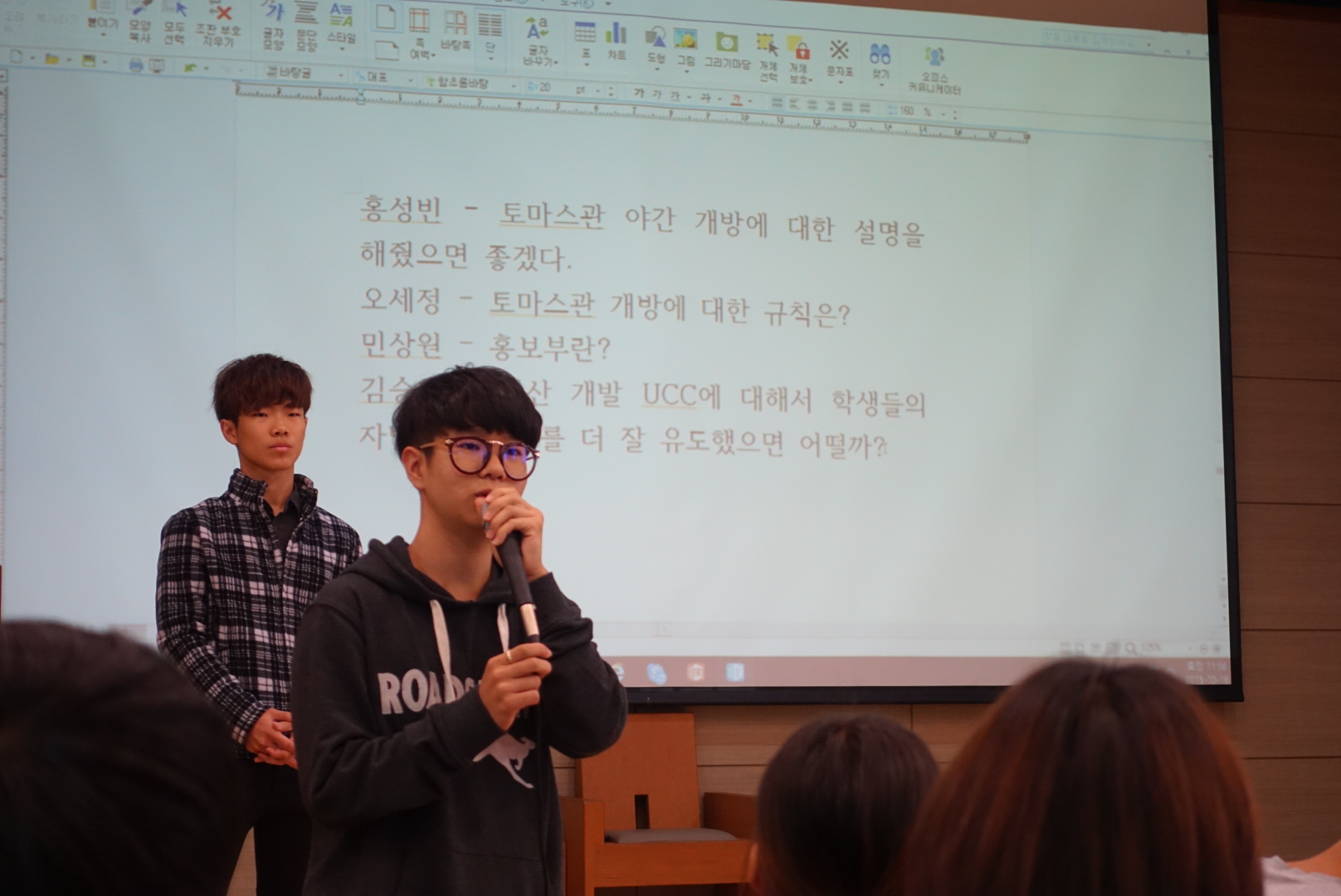 학내행사 한글날 기념 골든벨 / 전체회의 / 해외이동수업 준비 바자회 / 소체육대회 / 우수동아리 시상식