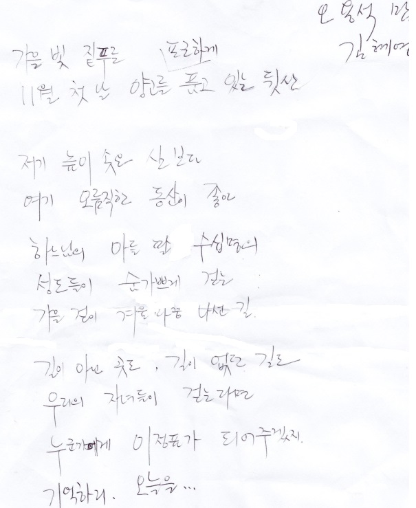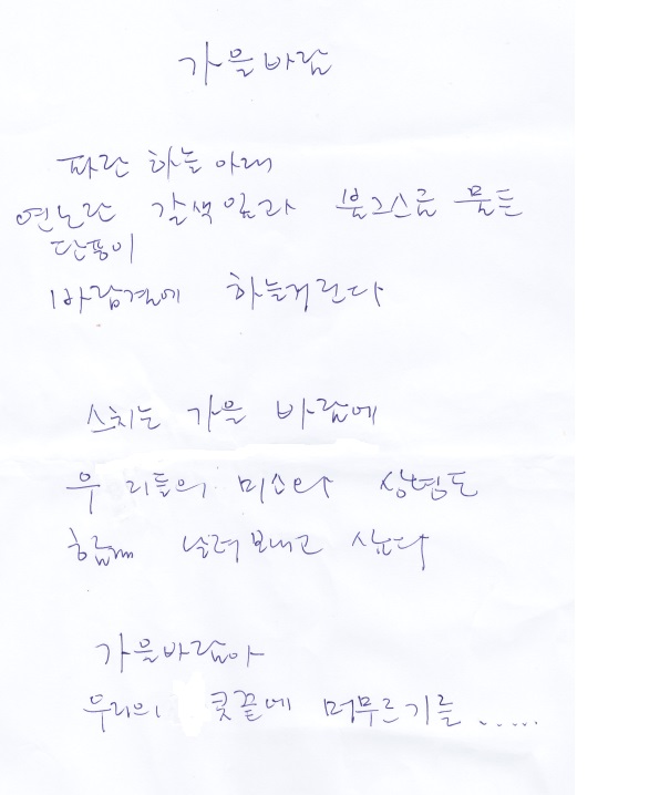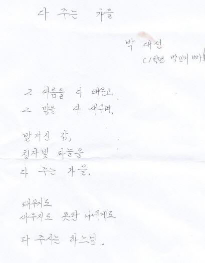 부모님들의 글씨 자체에 마음이 담겨 있어 그대로 올립니다.