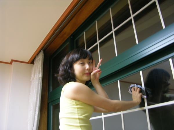 창을 닦고있는 미진이
