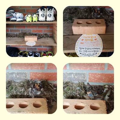 몇 주 전, 학생들의 신발장 한 켠에 둥지가 틀어졌답니다..