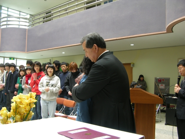 입학을 허가한후에 신입생 대표와 포옹~