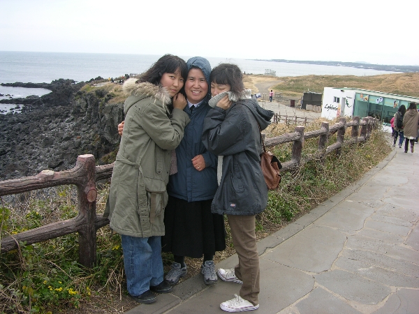 어찌나 바람이 부는지 바람에 수도복 수건이 훠얼 훨 날라갈까봐 드디어 모자를 썼다....