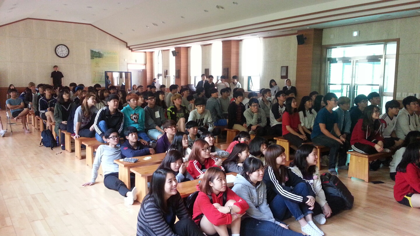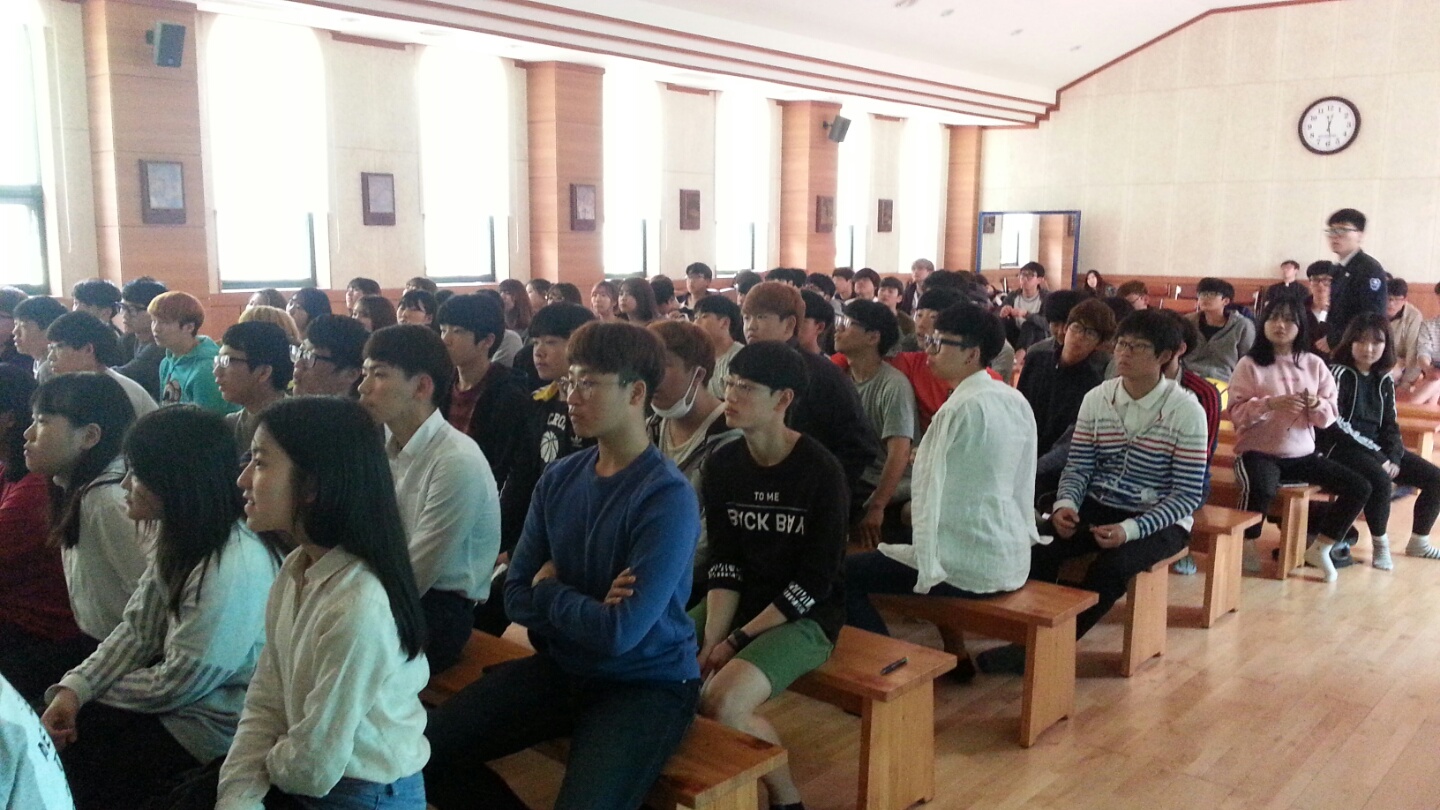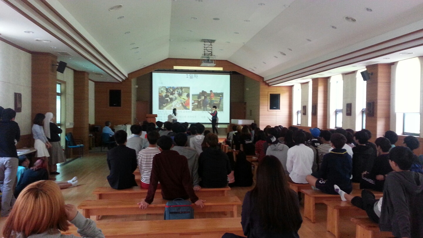 금일 4교시에 토마스관에서 전교생이 모여 1학기 봉사활동 평가회를 실시하였습니다.