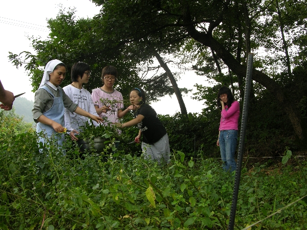 수돗가에서 깨끗하게 세척한 다음 도서관 뒷편에 노끈을 이어 다발을 만들어 말려 놓았지요.