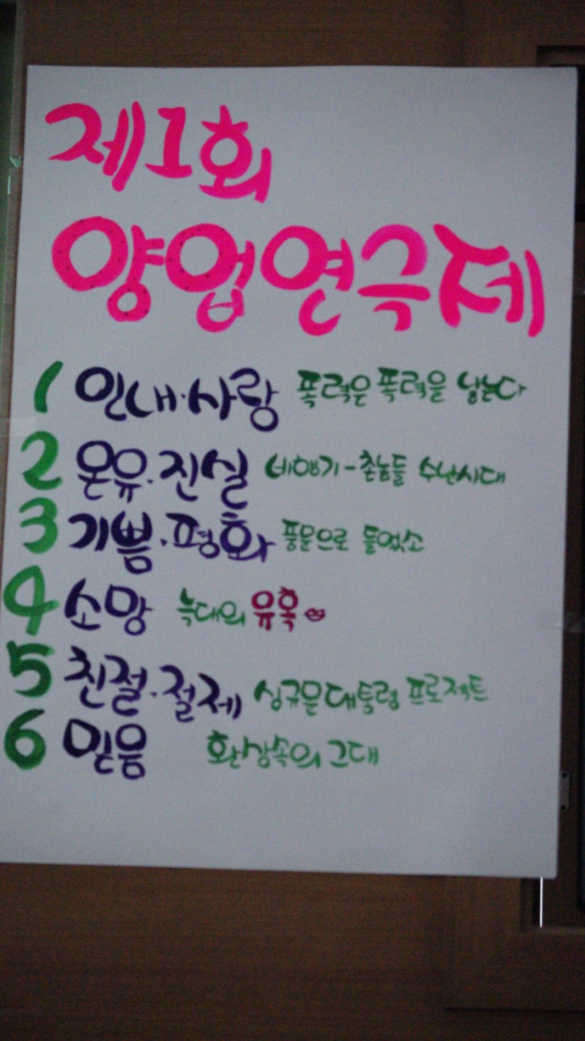 앞으로도 우리 양업 연극제가 더 발전하고 좋은 작품이 등장하도록 많은 성원바랍니다.