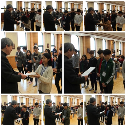 2015학년도 1학년 반장과 기숙사 홈장에 관한 임명장을 수여하였습니다.