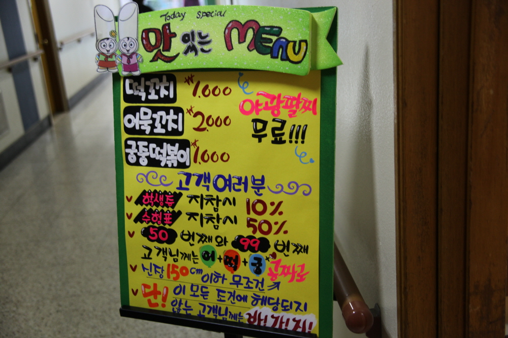 학생들이 준비한 평화분식, 찐빵분식, 고구마와 감자 튀김집, 닭꼬지 컵포차,,,