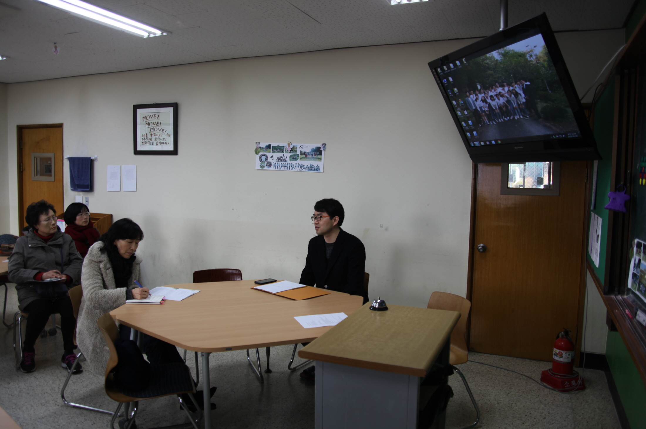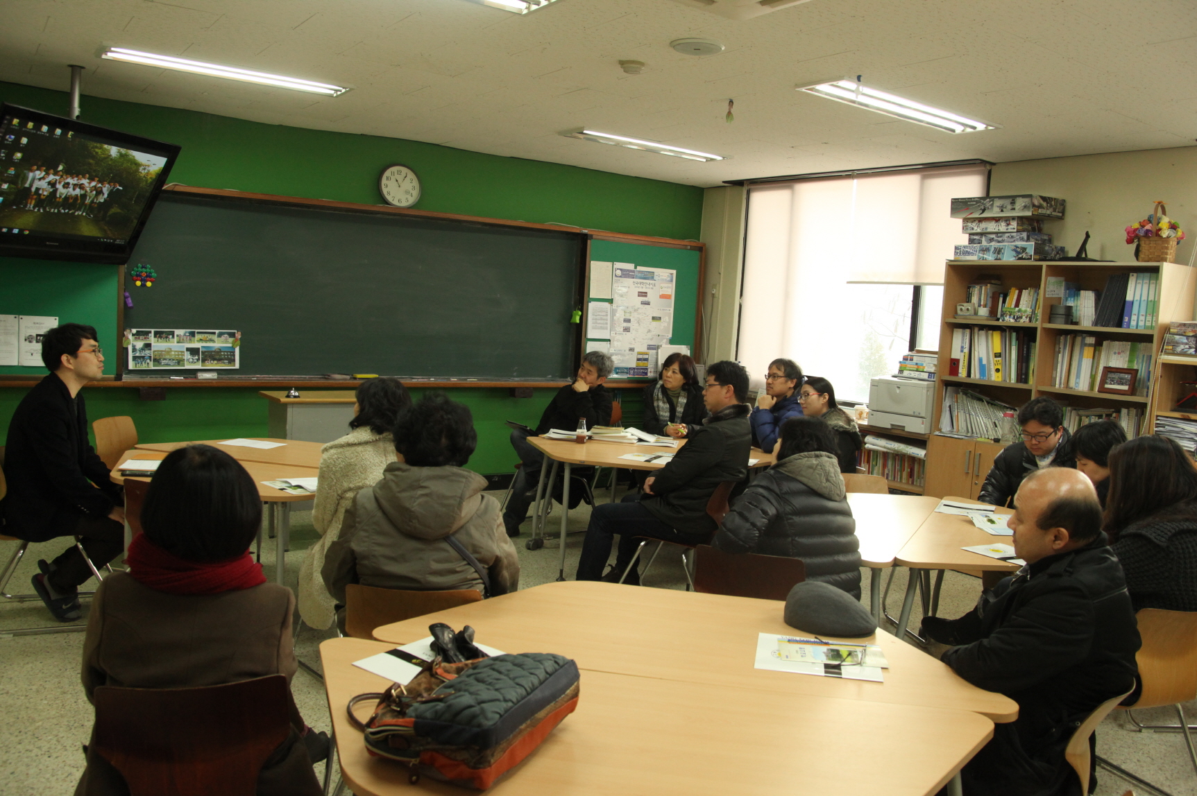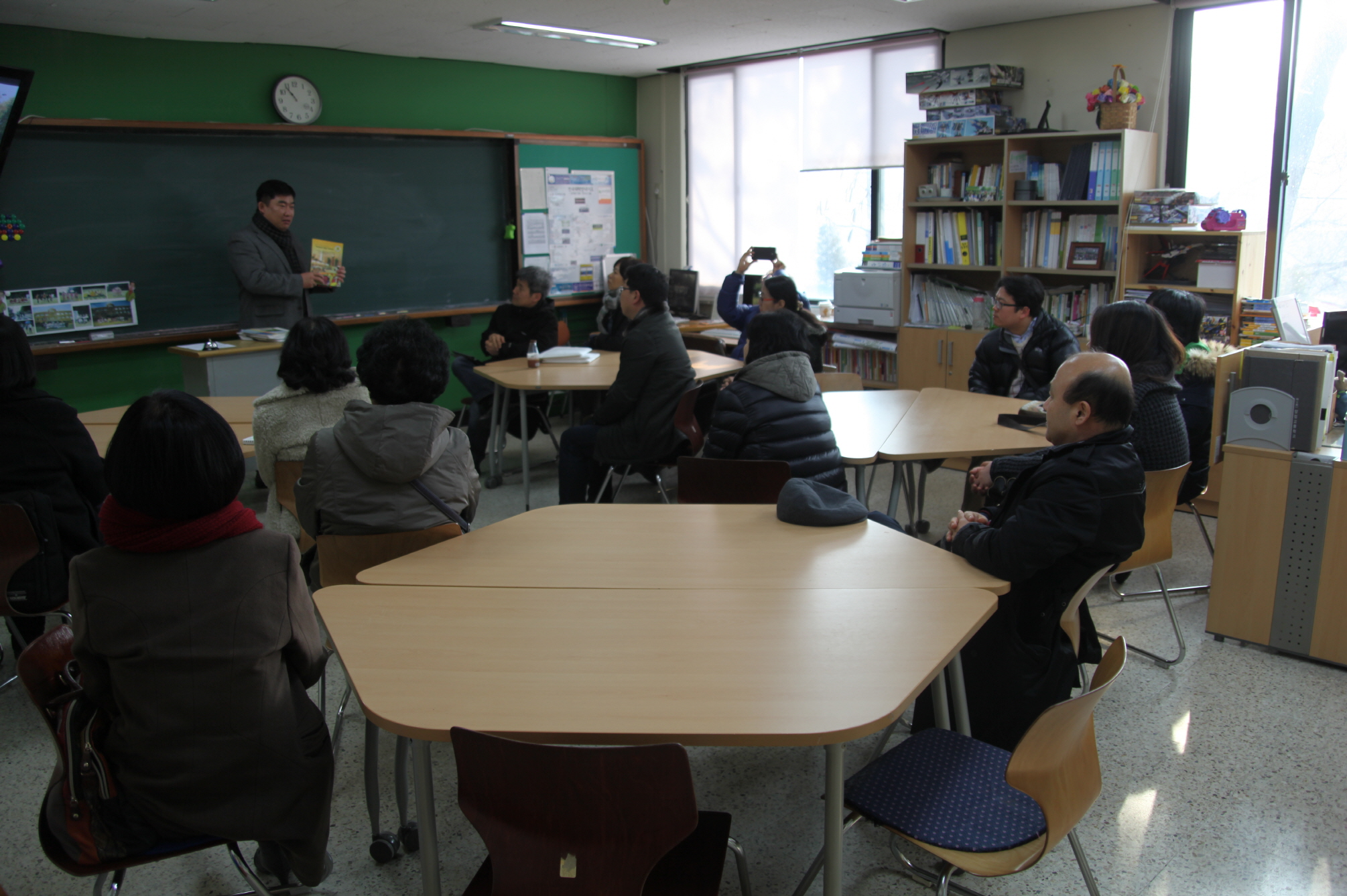 교장 선생님과 13분 선생님은 지송근, 김봉호 선생님에 의해 우리 학교 소개를 듣고