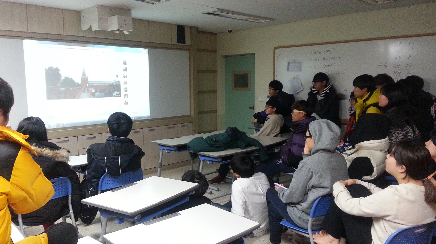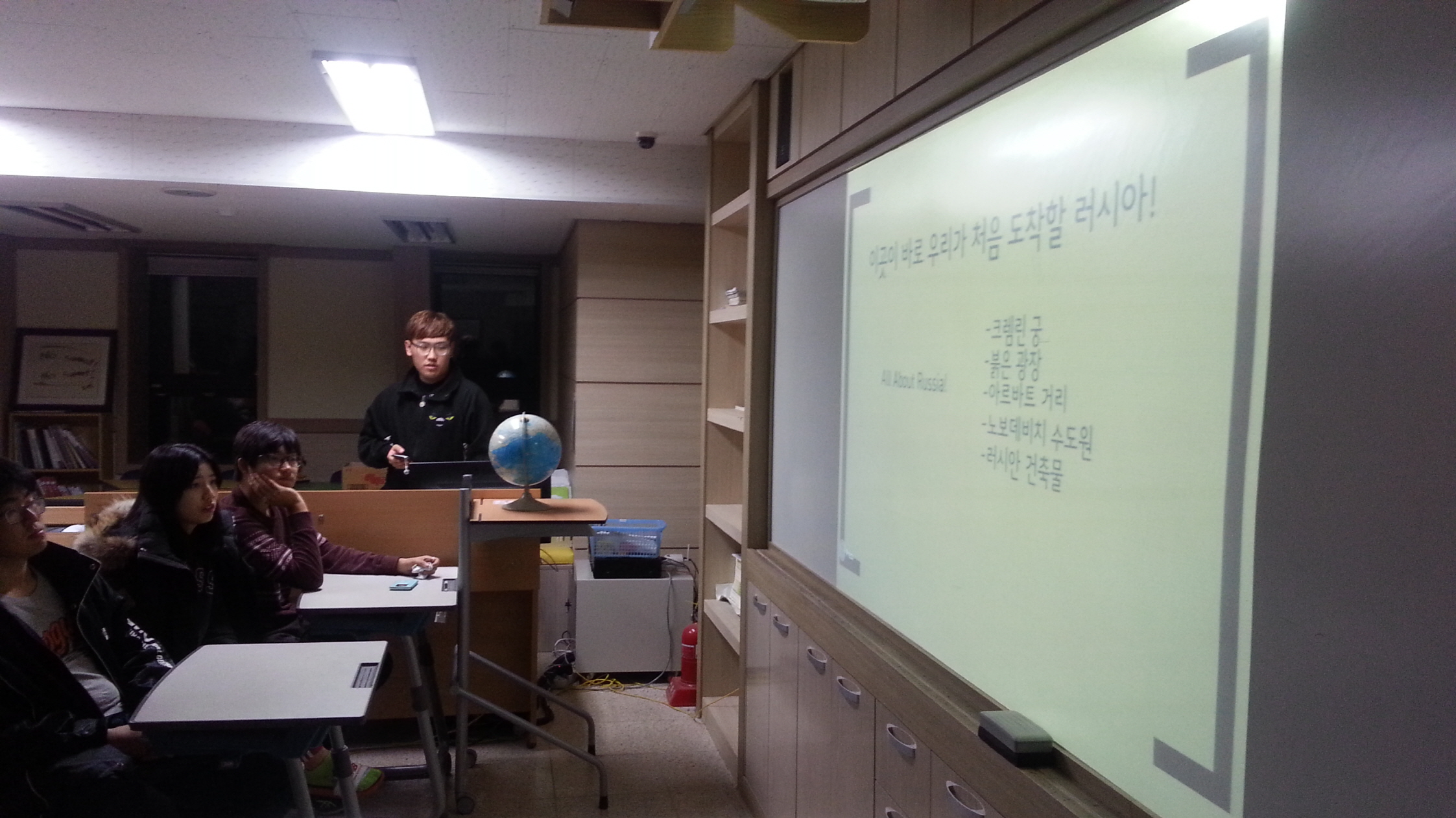 발표는 2반에 최인혁 군이 맡아주었고, 러시아의 크레믈린 궁전, 붉은광장, 러시아의 건축물,
