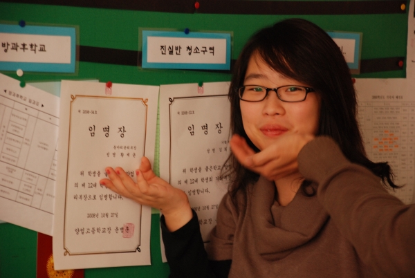 이 사진은, 진실반 학생들이 자신들이 상장을 탔다면서 교실 뒷면에 붙여놓았답니다.