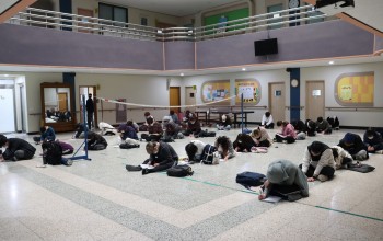 교내 과학 탐구 대회의 열정적인 실험 모습