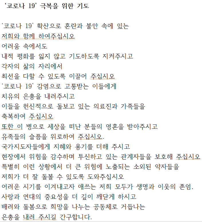 코로나19 극복을 위해 기도합니다.