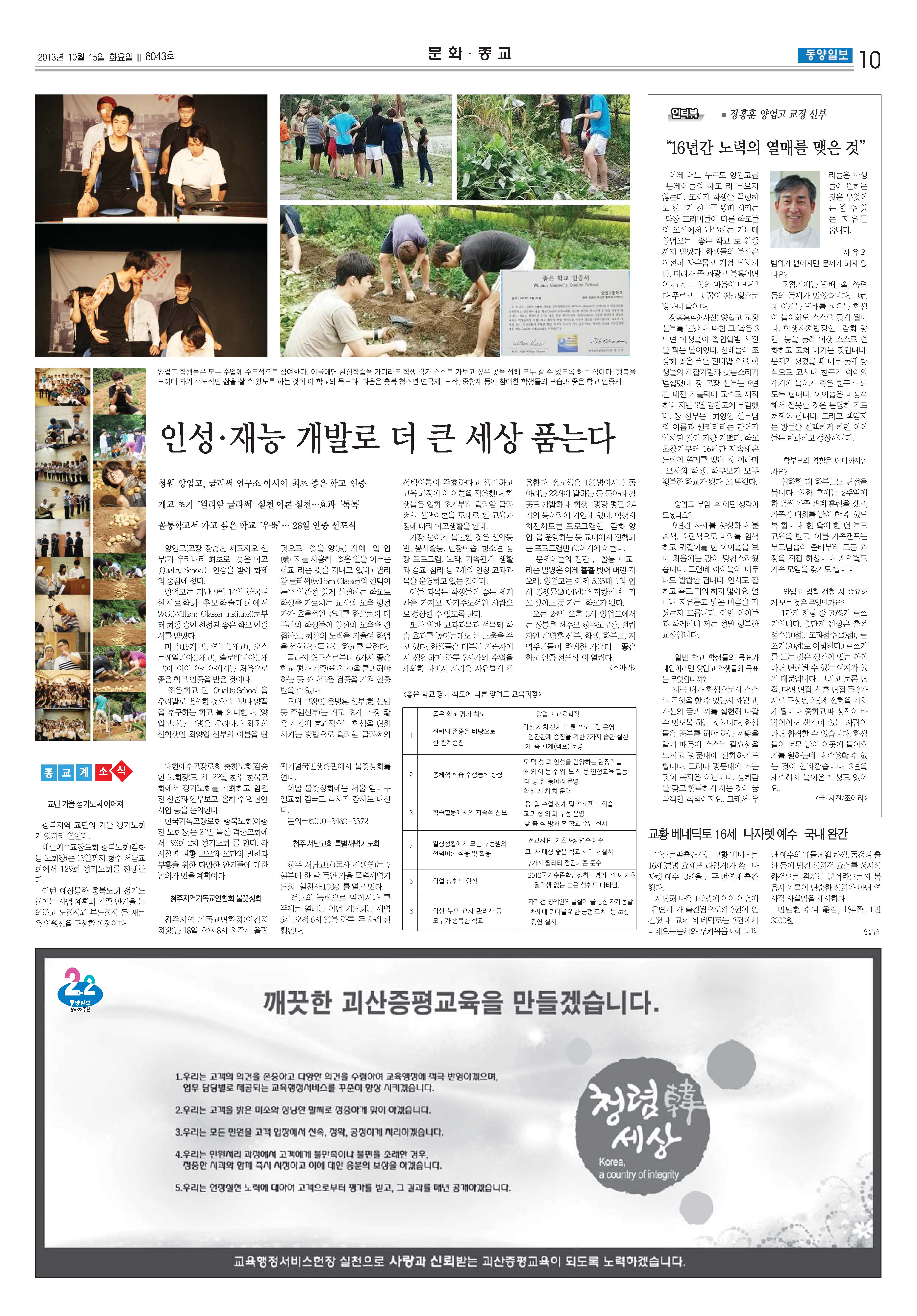 인성*재능 개발로 더 큰 세상 품는다.-동양일보 보도