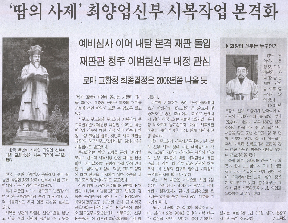 언론이 본 최양업신부님