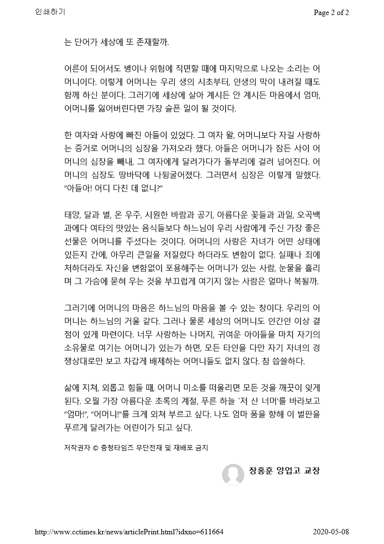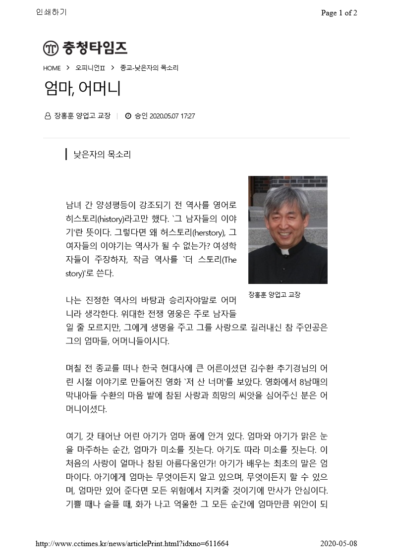 엄마, 어머니(충청타임즈,2020.05.07)