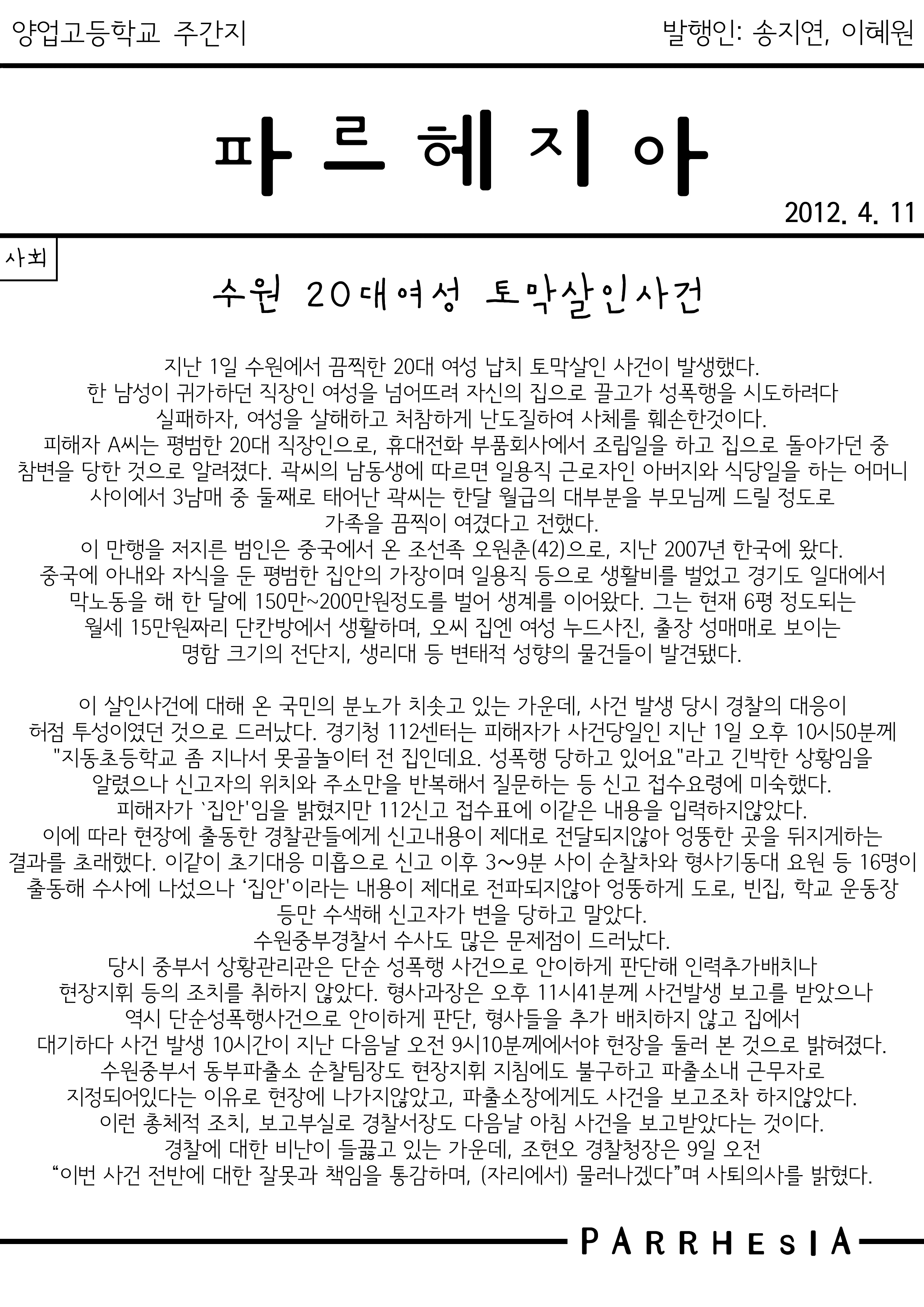 제가 이번달부터 혜원이랑 같이 시사나 경제, 사회등에 관련된 주간소식지를 만들어서