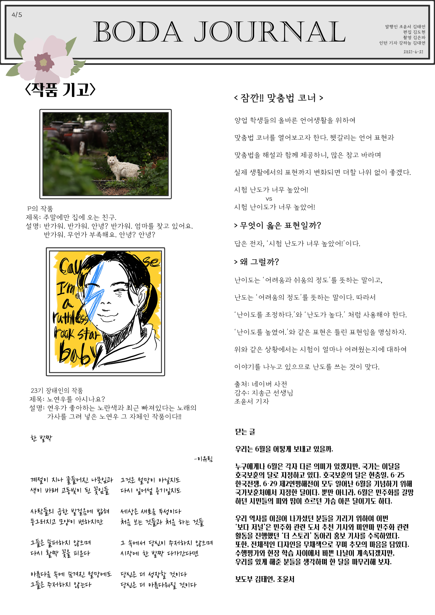 24대 학생회 보도부 제 6호 'BODA JOURNAL'이 발행되었습니다.