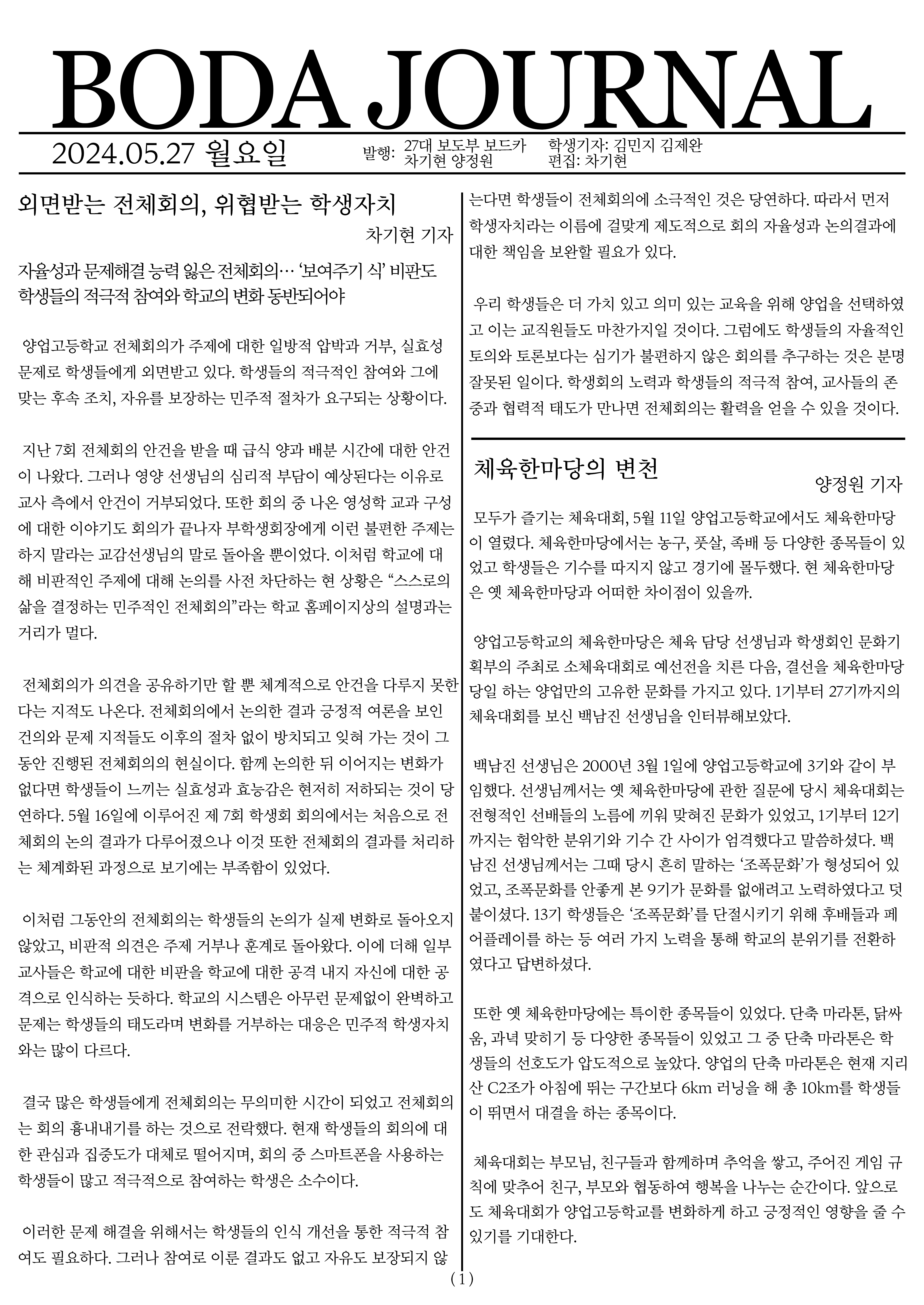 27대 보도부 제 5호 'BODA JOURNAL'입니다.