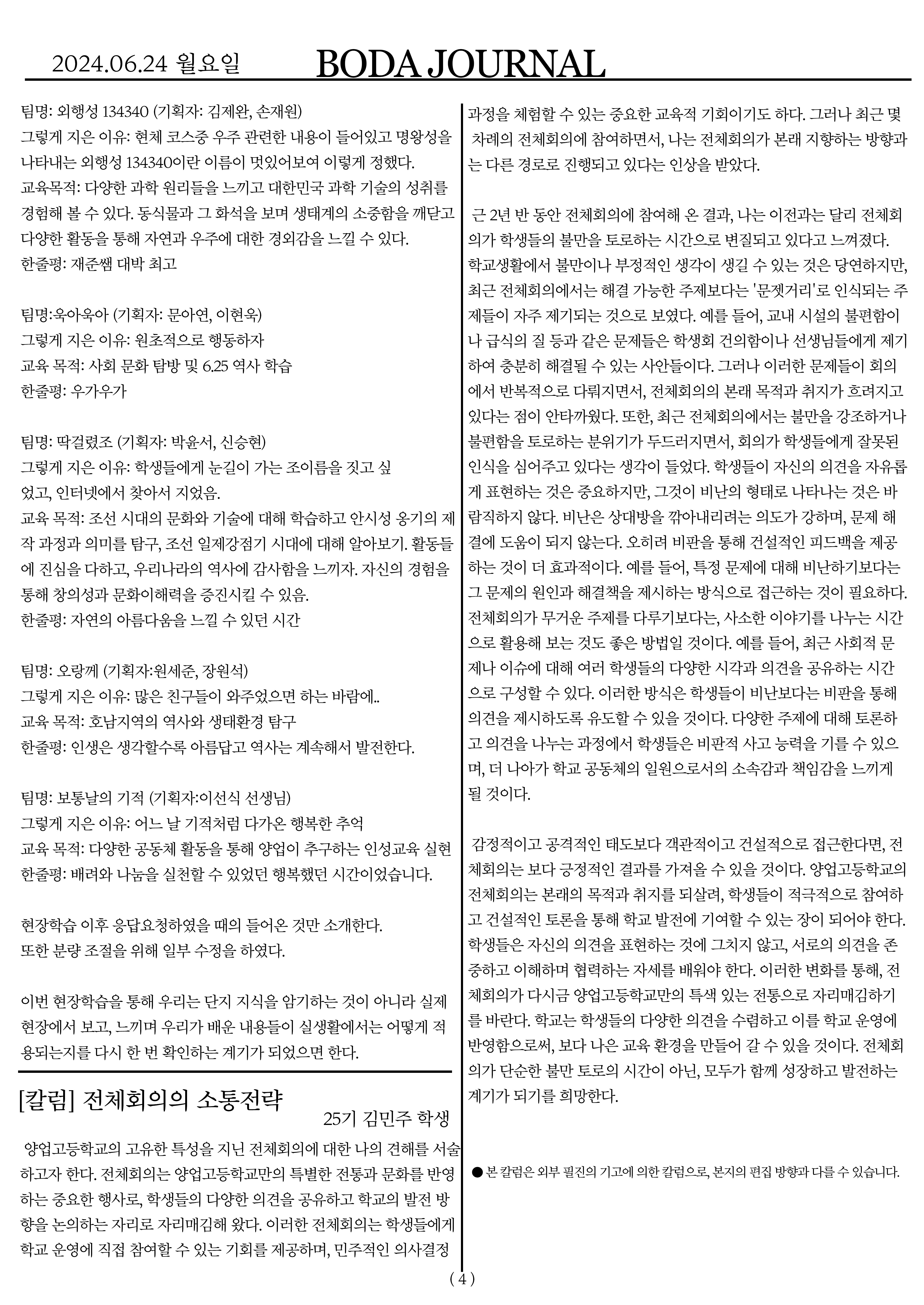 27대 보도부 제 6호 'BODA JOURNAL' 입니다.