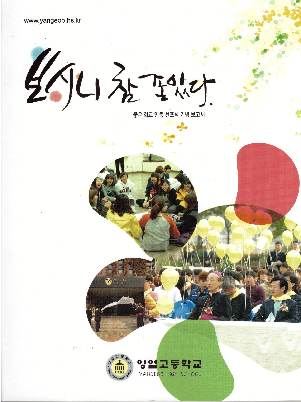 지난 해 좋은 학교 인증 선포에 다른 기념 보고서를 제작하여 지난 3월 청와대와 교육부 및 천주교 전국 교구와 주교님들과 교육기관에 보내드렸습니다.