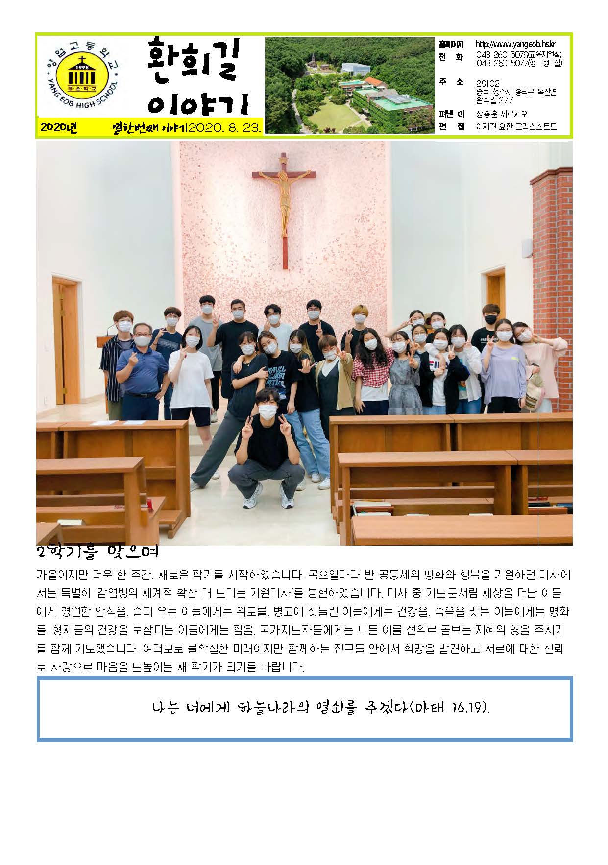하느님의 도우심으로 새로운 학기가 시작되었습니다. 기도 부탁드립니다.