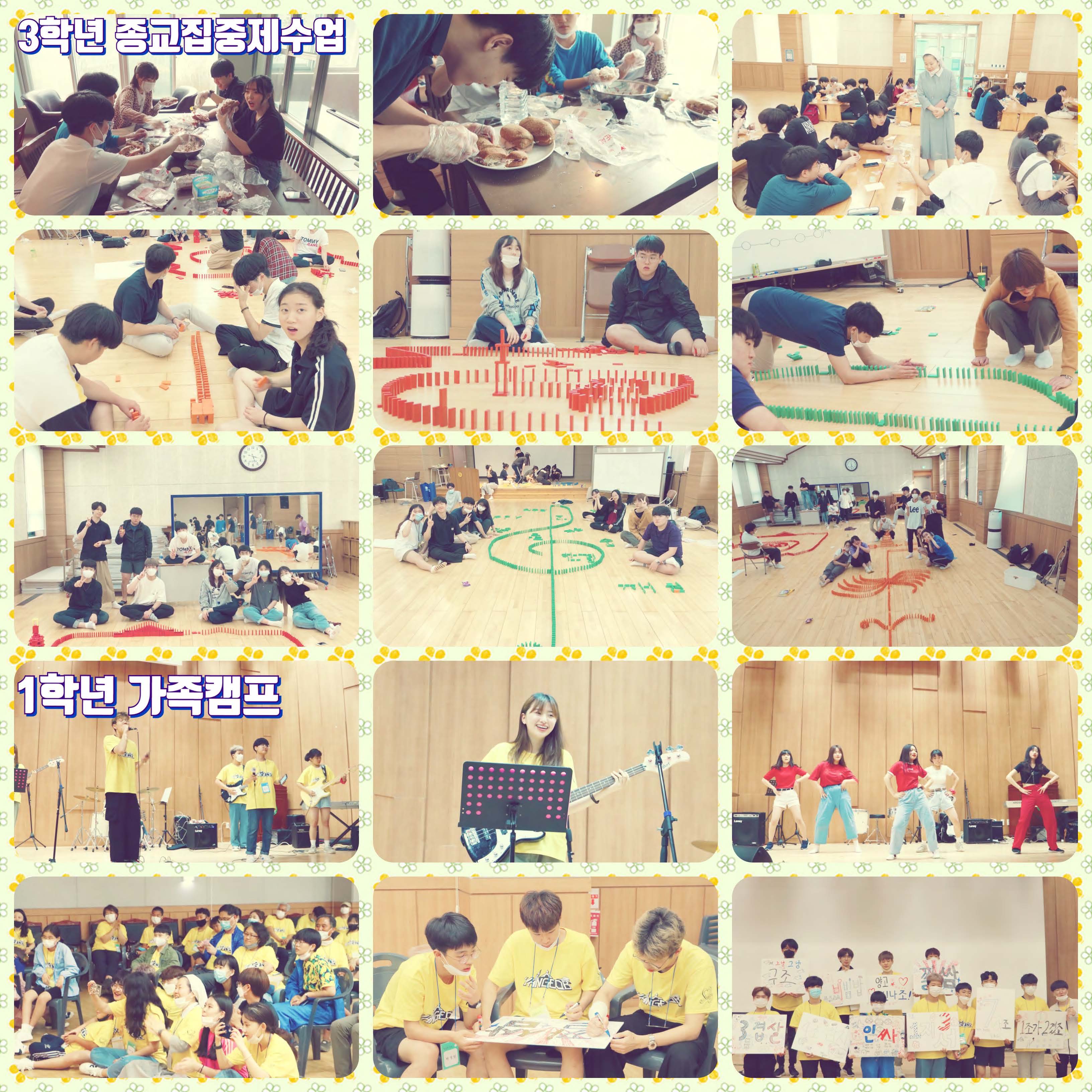3학년 종교집중제 수업, 1학년 가족캠프가 있었습니다.