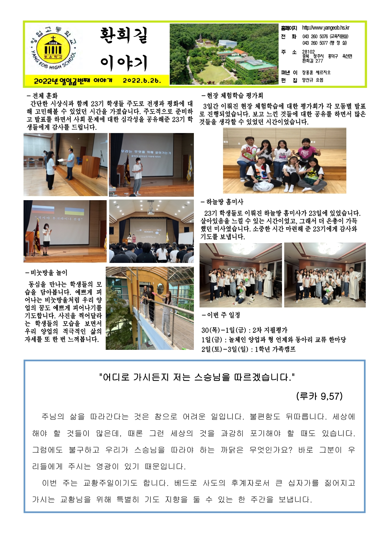 연중 제13주일이면 교황주일 환희길 이야기
